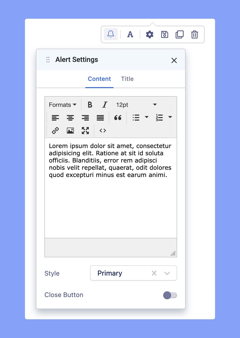 Close Button: With the close button, the alert will be closed. Enable this option if you want to show the close button, leave this disabled if you don’t.