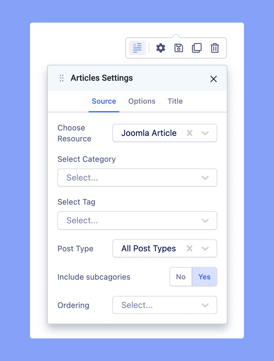 Ordering: Select the ordering of how the article will be ordered. There are few options, like latest, oldest, popular, etc. Select your desired one from the drop-down list of ordering options.