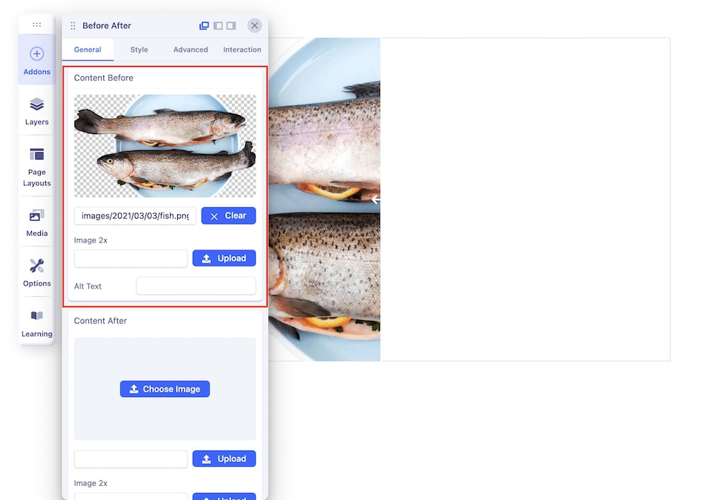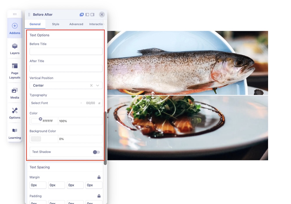 The Before After Addon lets you effortlessly showcase transformations or visual changes with a captivating before-and-after effect. Upload two images, and users can compare changes side by side. Like other SP Page Builder addons, the Before After addon is fully customizable.