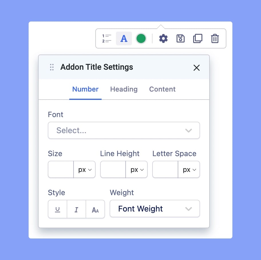 The Addon Title Settings lets you customize the typography for numbers, heading, and content. To know more about the Typography settings of SP Page Builder, refer to this documentation.