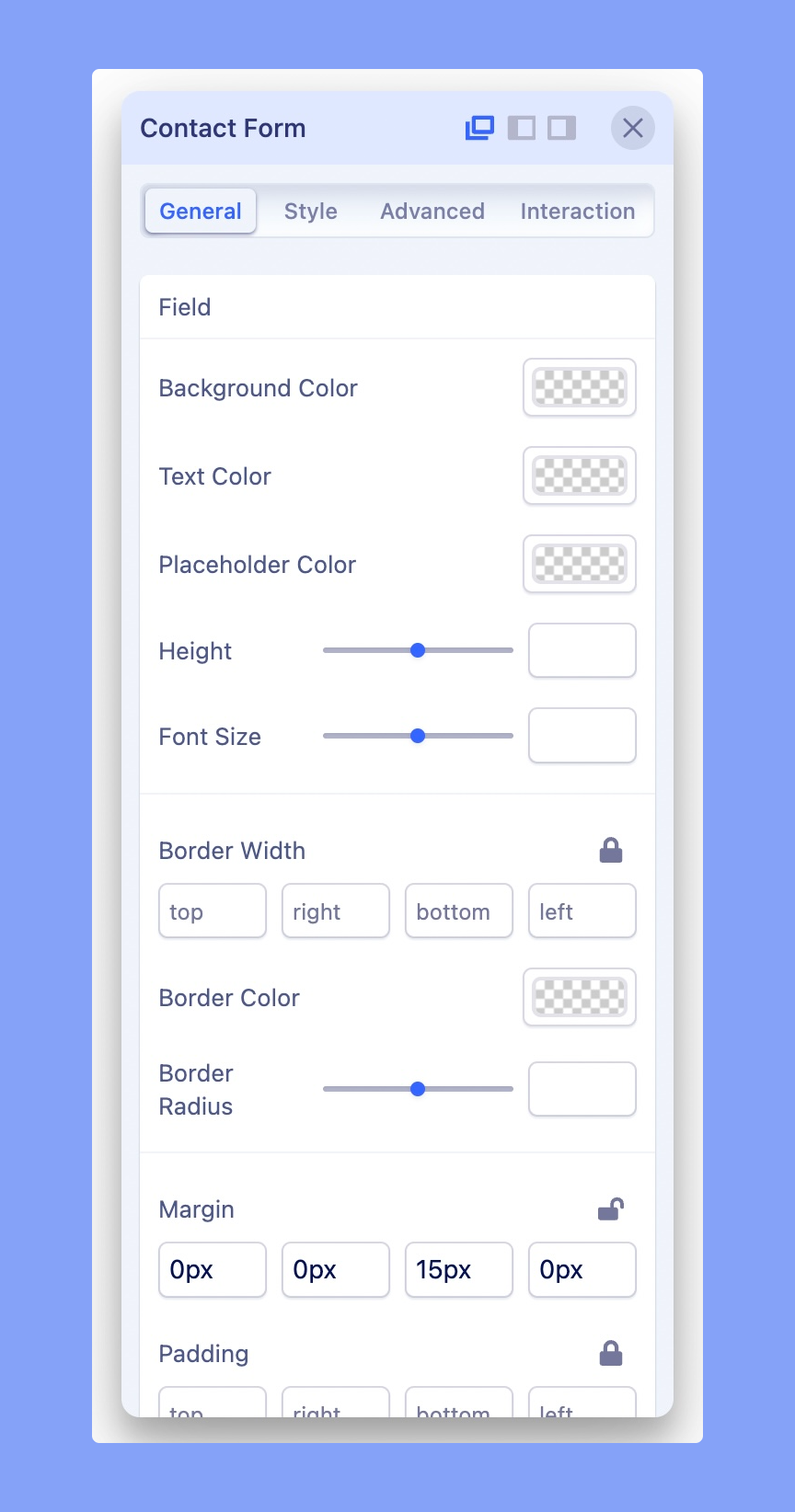 Placeholder Color: Set the color of the placeholder texts in the input fields.