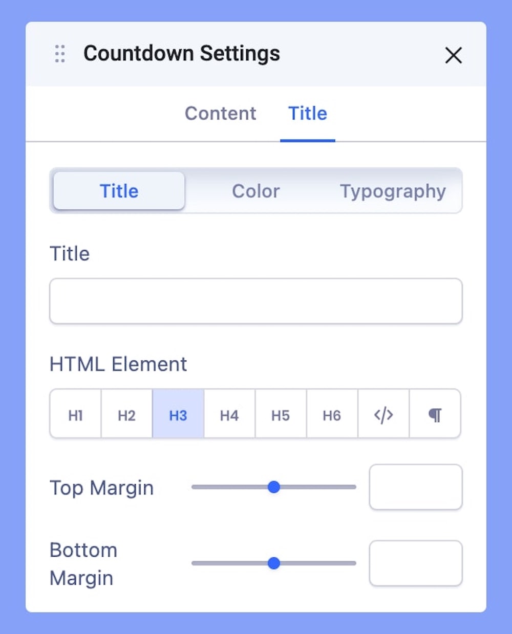 Typography: Edit your title Font, Size, etc in this tab. Learn more about settings here.