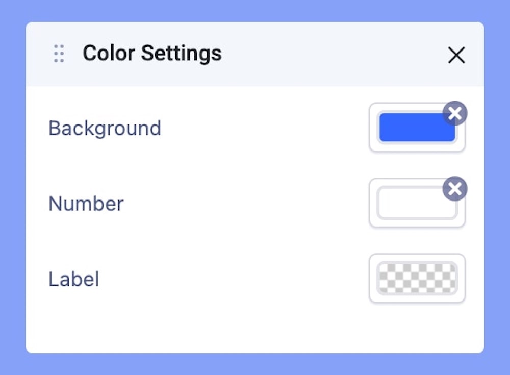 Change the background color, the color of the numbers used in the countdown timer, and the texts used inside the timer using the color settings. Learn more about the Color settings here.
