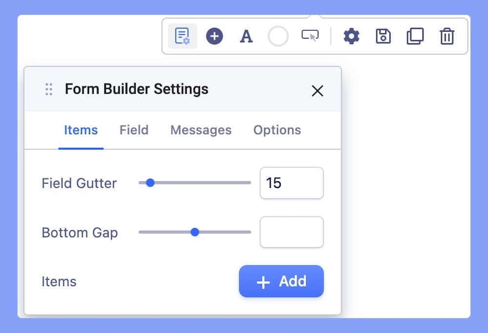 Items: Within this section, you can effortlessly add new items to your contact form, enriching your form-building capabilities.