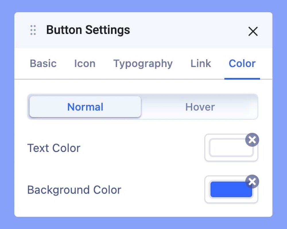 Use the Color tab settings to edit the color of your added button on normal and hover state.
