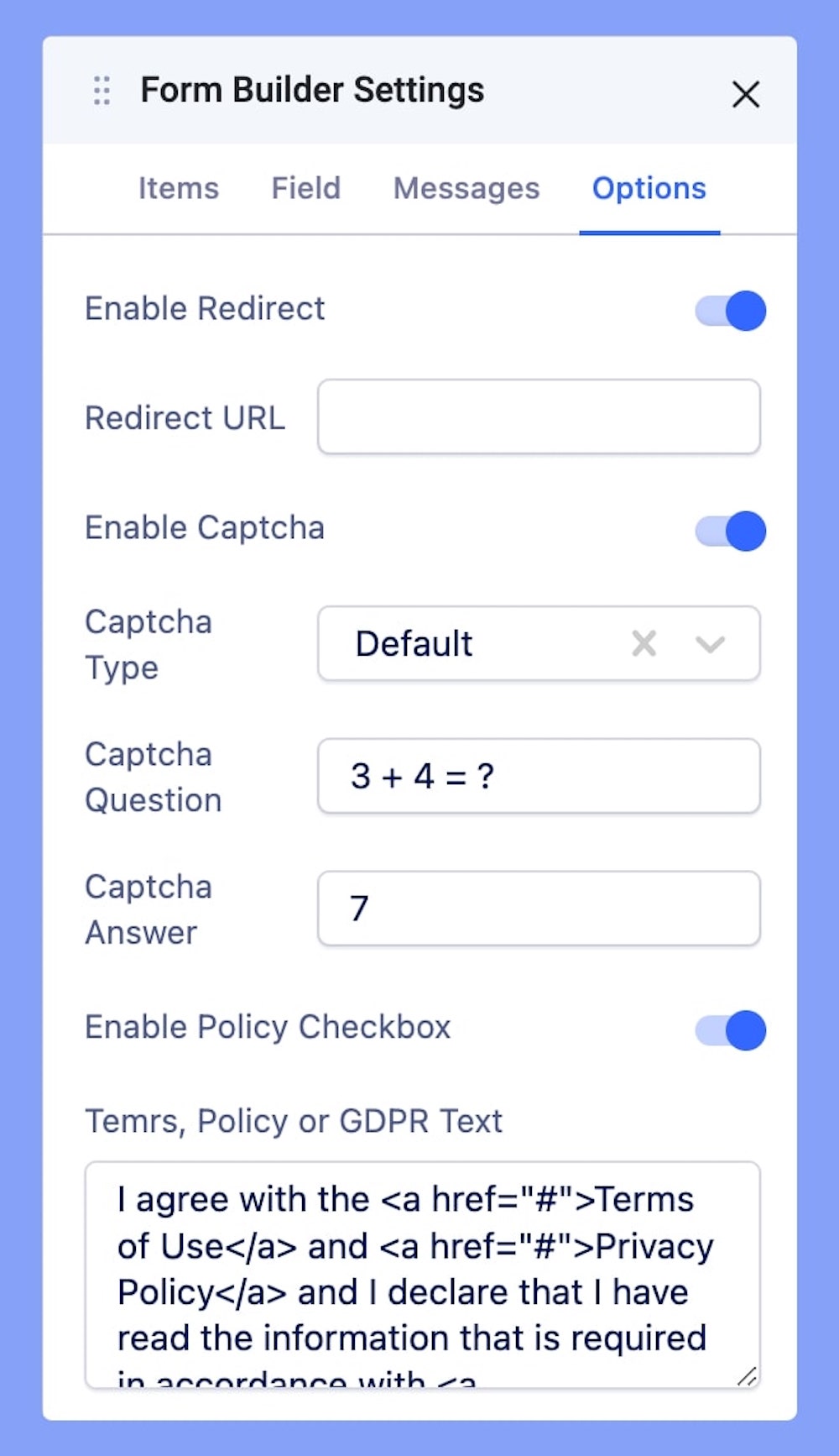 Enable Policy Checkbox: Include user policy or GDPR information if needed by enabling this option.