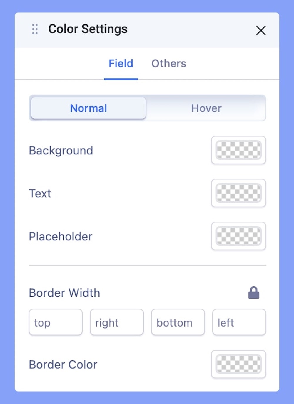 Normal: In this tab, you can edit the colors for Background, Text, Placeholder, and Border.