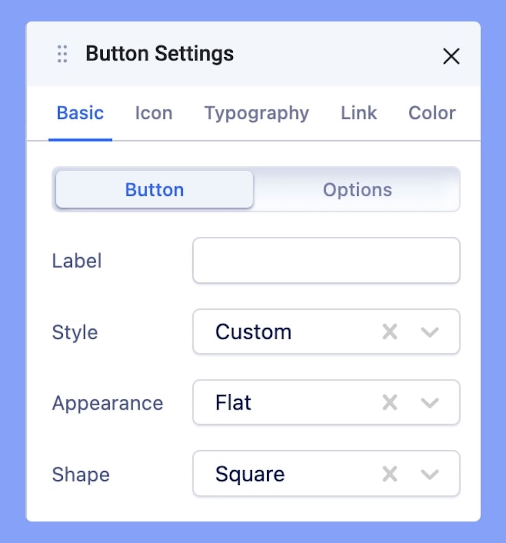 The Button Settings comes with all the options necessary to create a fully customized button.