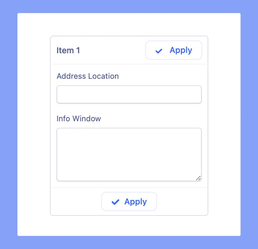 Also after saving, each Item will be listed just under the Add button on Google Map Settings menu. From here, you’ll be able to edit, duplicate, and delete these items using the icons on their right.