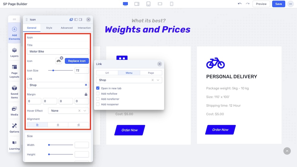 Margin: Set the margin for the icon. Use this option to enter the value. The value you have entered is the pixel(px) value. Set the margin for all four sides (Top Right Bottom Left). Negative values are also allowed.