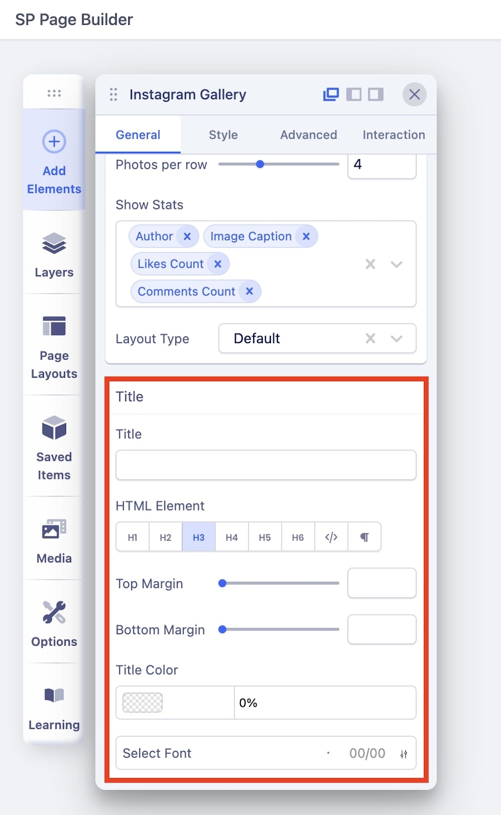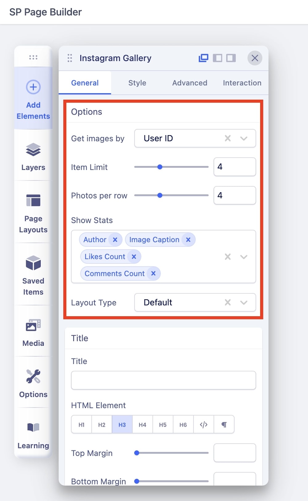 Once you have successfully linked your Instagram account and the Facebook Page, all you have to do now is add and customize the Instagram Gallery Addon. It can be added to an SP Page Builder page just like any other addon. Go to the editor view of the page you want to add an Instagram Gallery, and simply add the addon.
