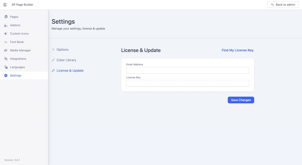 To do that, go to SP Page Builder Dashboard>Settiings>License & Update