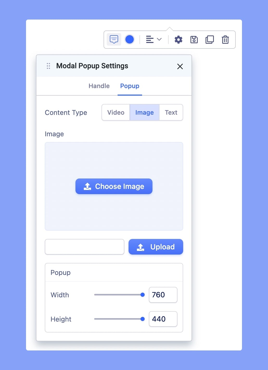 Popup Height: Set the modal popup height. The height will define the amount of space the modal is going to cover vertically.