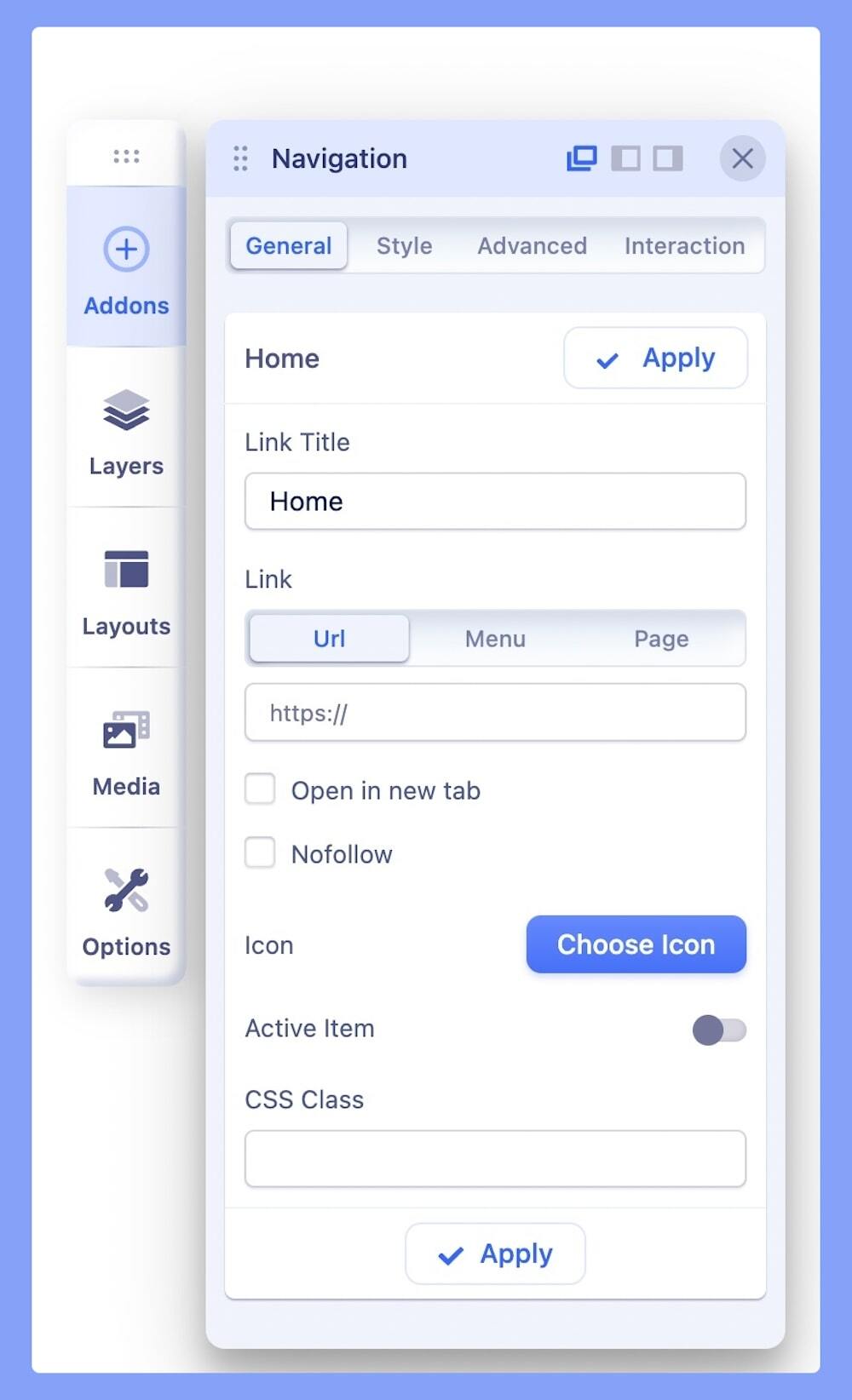 Choose this option if you want to set an Icon in your Navigation menu items.