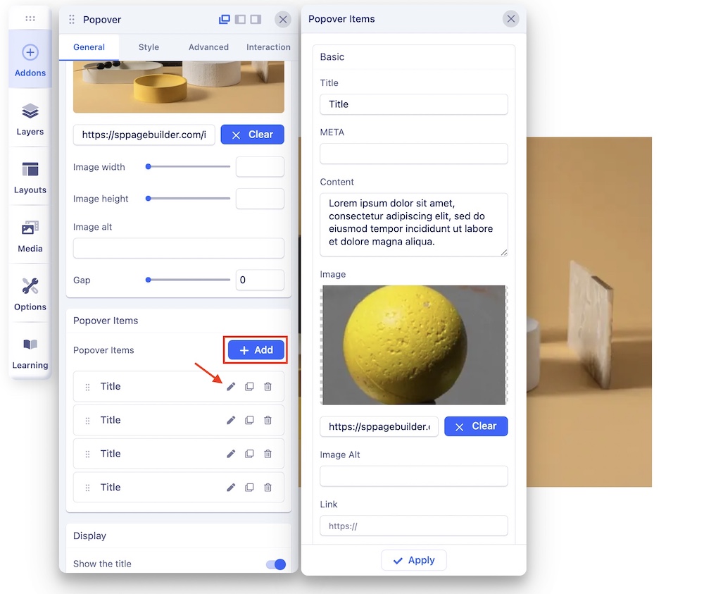The Popover Addon in SP Page Builder empowers you to create sleek and customizable image popovers that enhance user engagement. When visitors hover over or click on an image, a popover appears, providing additional information, descriptions, or context.