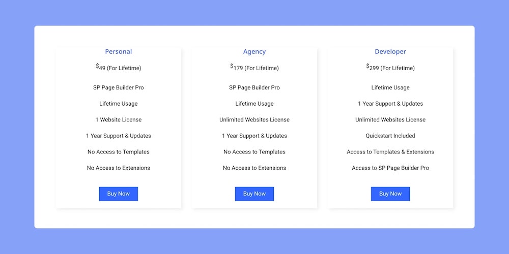 The Pricing Table addon is a block that can be used to showcase any service or product’s Pricing Plans. Normally, creating such a thing can be time-consuming but with this pre-made addon, you can design your pricing page in no time!