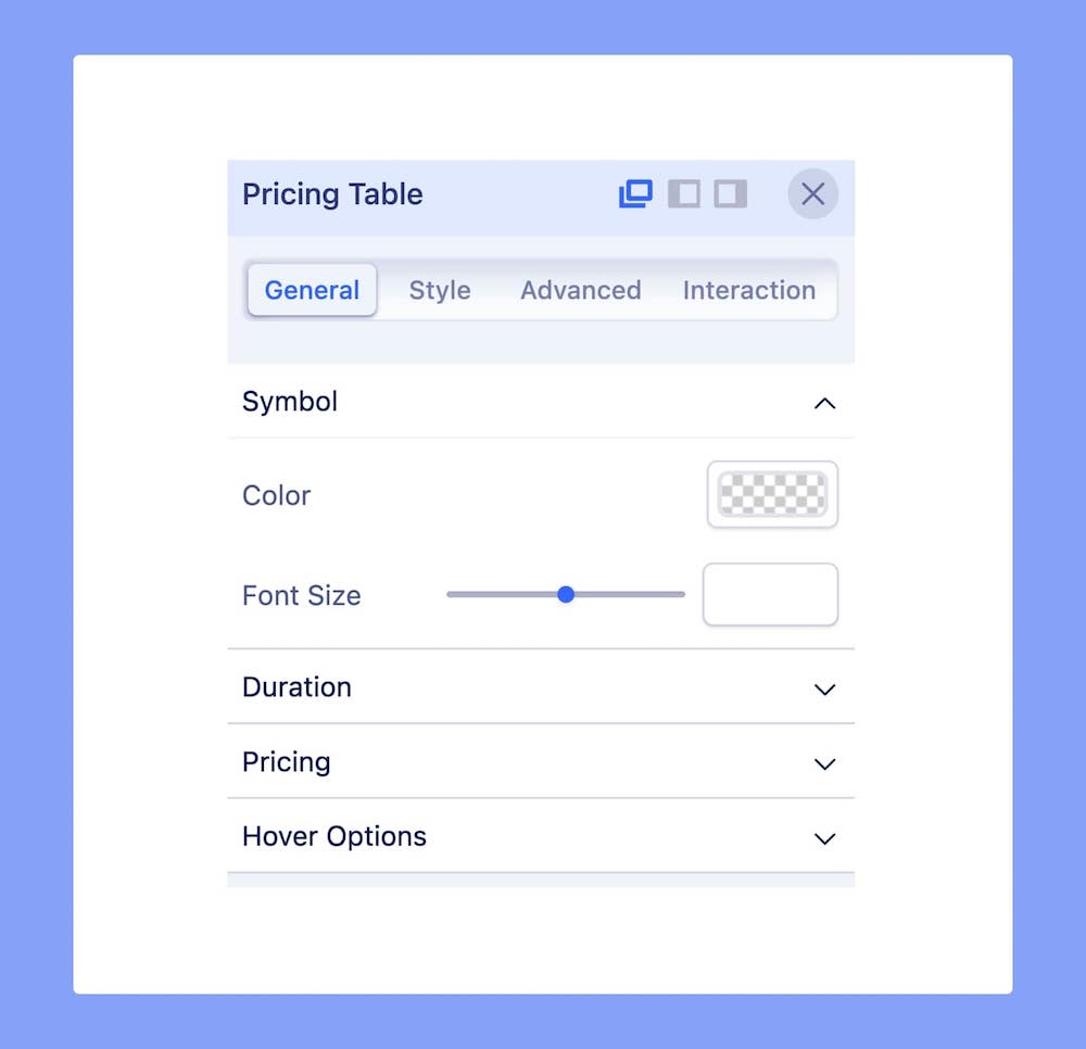 Under Pricing, you’ll find several options to customize the look of the Pricing in the Pricing Table.