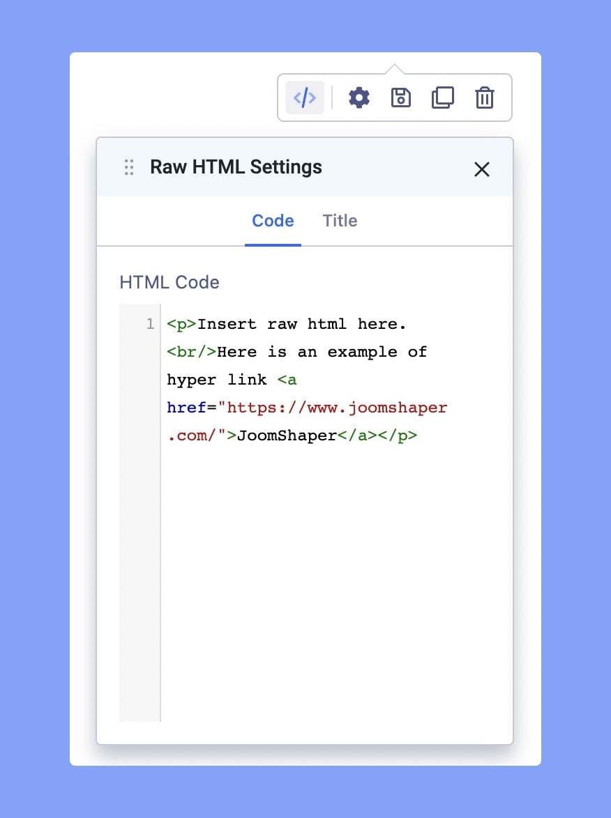 Raw HTML Settings