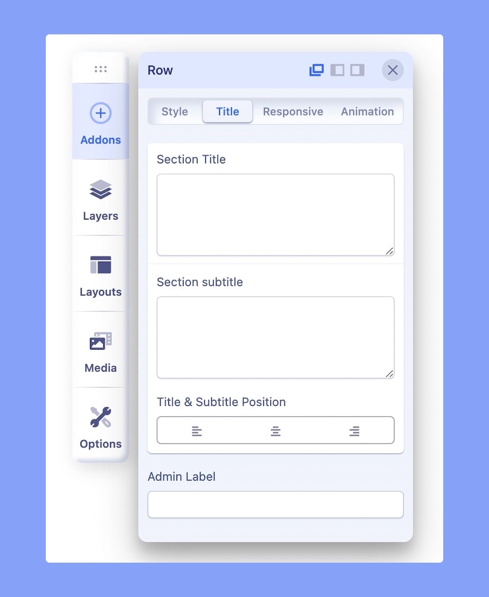 The Row Options consist of the Style, Title, Responsive, and Animation tab.