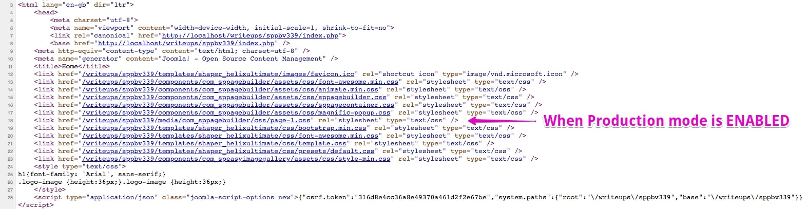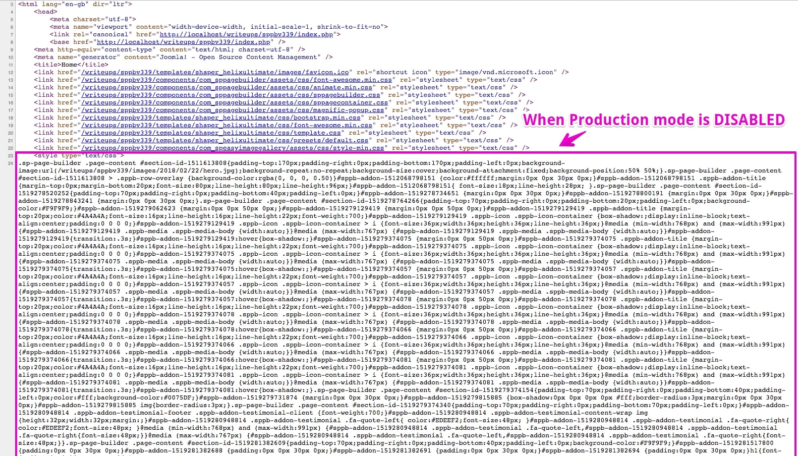 The production mode automatically stores the CSS code that generates from all the addons on a web page into a single CSS file. Doing so reduces the website loading time. The addon CSS used to be generated inside the header tag before this mode was introduced.
