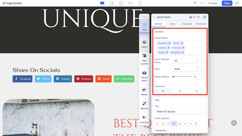 SP Page Builder’s Social Share addon lets you add social sharing buttons to your website page. Social shares are a great way to share your content, drive traffic, and create a ton of engagement.
