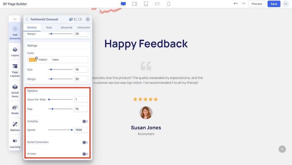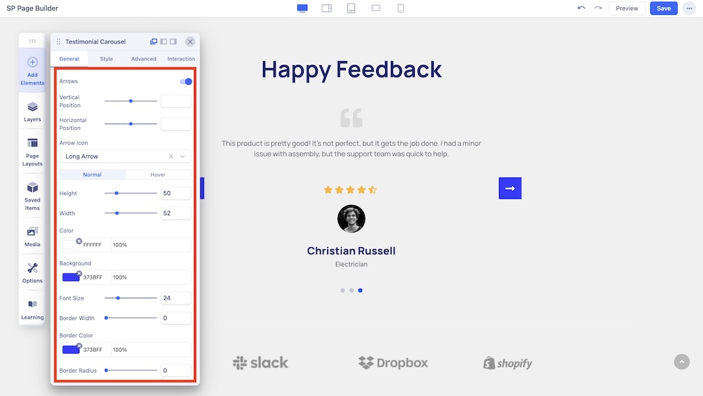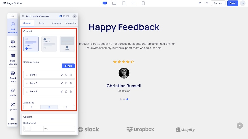 A Testimonial Carousel is a smart way to display positive user reviews of a product or service. Showcasing testimonials on your website is a great way to boost its credibility and deepen visitors’ trust.