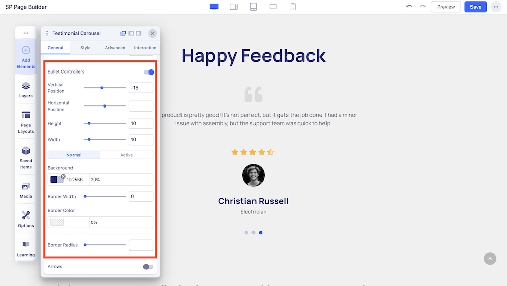 Border Radius: Adjust the border radius of the carousel.