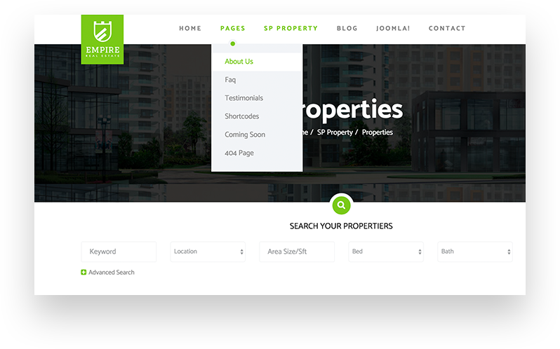 Empire is the September 2016 template from the house of JoomShaper. The 100% responsive Joomla template is crafted for real estate agencies, brokers, builders, and other relevant parties. Empire has an organized, beautiful, neat & clean design with every modern feature necessary to launch a real estate centric website to display properties with easy searching systems.