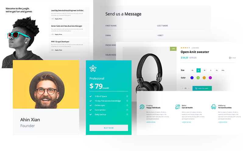 Alongside having all required pages ready inside this multipurpose Joomla template, some of the most important pages come with multiple variations. They vary in design and elements but offer equal values for the visitors. The pages are: