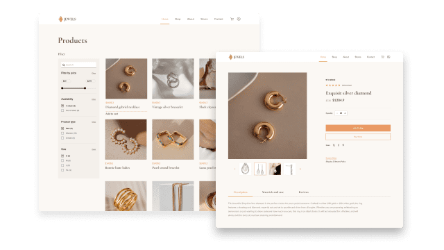 The Jewels template comes with 3 home page variations for your jewellery and watches collections. Showcase your products in a stylish and elegant manner, leaving a lasting impression on your customers.