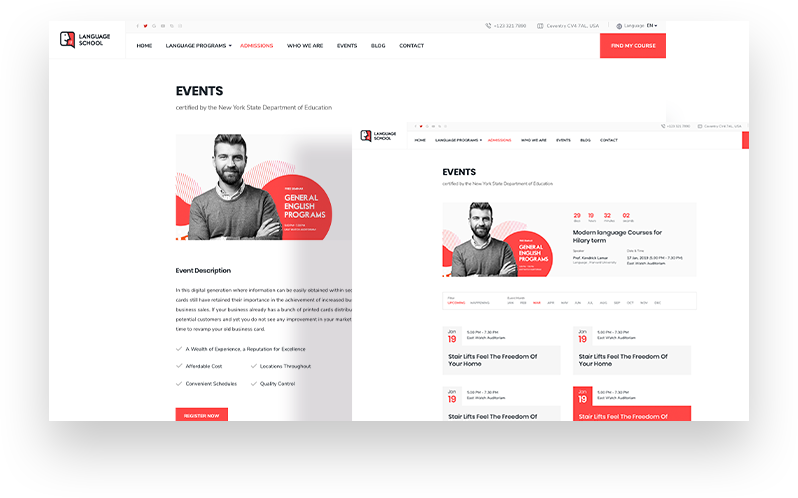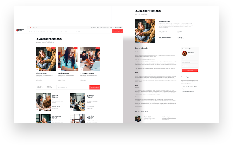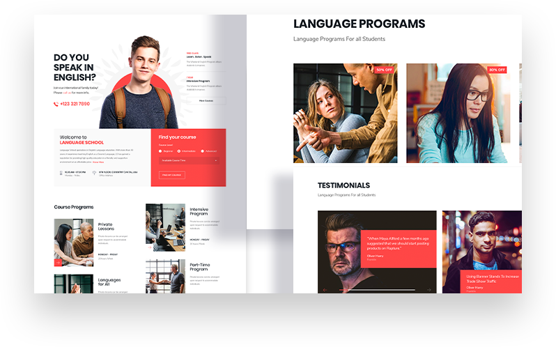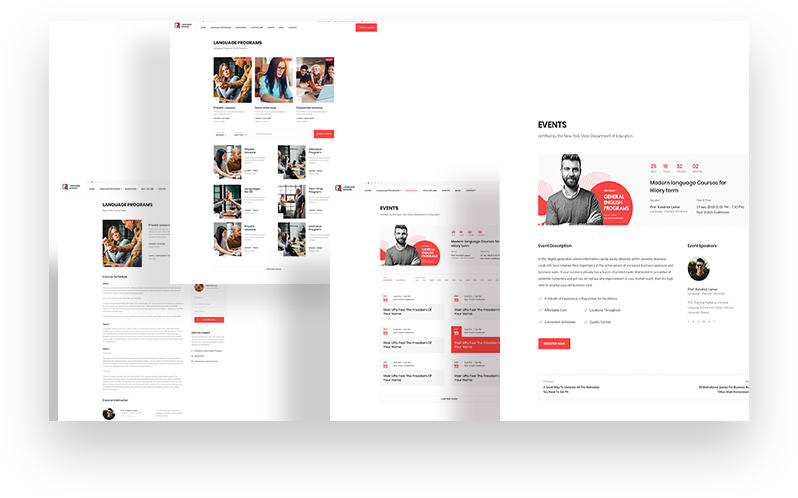 Kickstart a language learning site with all required pages given inside this Joomla language school template pack. There are ready pages like Registration, Coming Soon, About, Login, 404 and more.