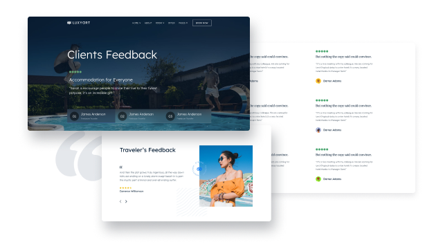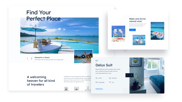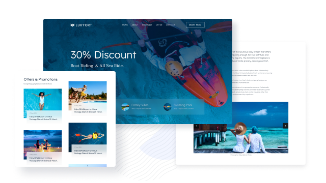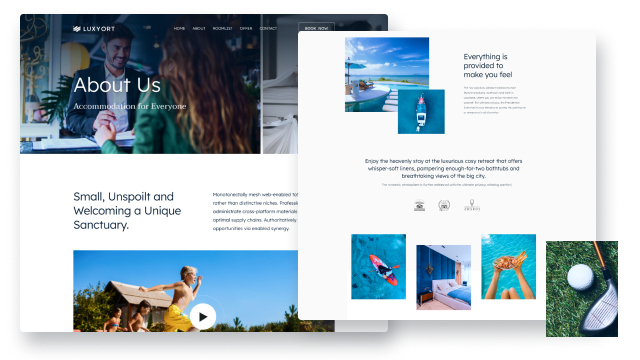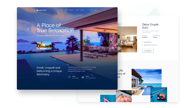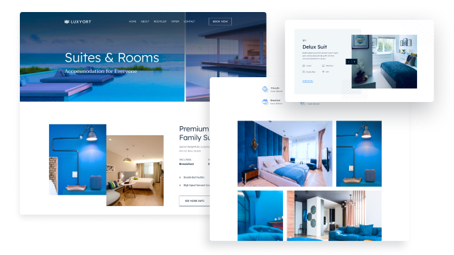 Luxyort is a luxuriously designed Joomla template to build a premium online presence for hotels, resorts, and other holiday destination businesses. Gain authority in your niche with minimal effort with a modern professional-looking website built with Luxyort. Get a couple of homepage variations, showcase rooms and suites, draw customers’ attention with offers and promotion, and do much more with the Luxyort Joomla template.