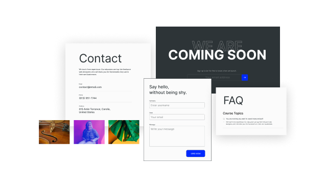 • Contact: Let students and site visitors easily reach you with a minimal and intuitive contact page.