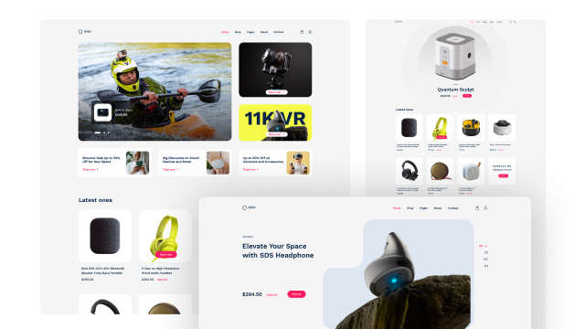 • Hero Slider Variation: The Hero Slider variation combines visual appeal with versatility. A prominent hero slider takes the spotlight, featuring a rotating showcase of key products. Well-suited for brands that want to highlight multiple gadgets or product lines on the homepage.