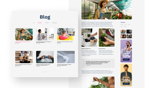 • Post previews with a title, a brief excerpt, a publication date, and a thumbnail