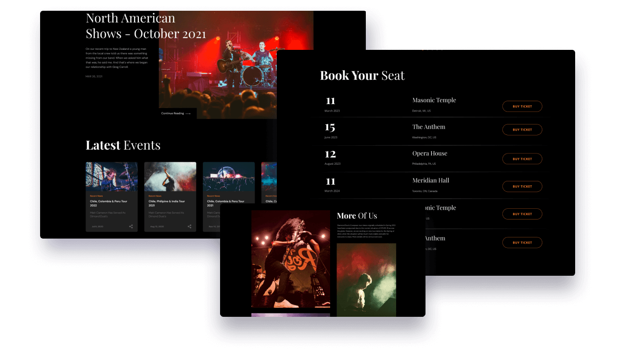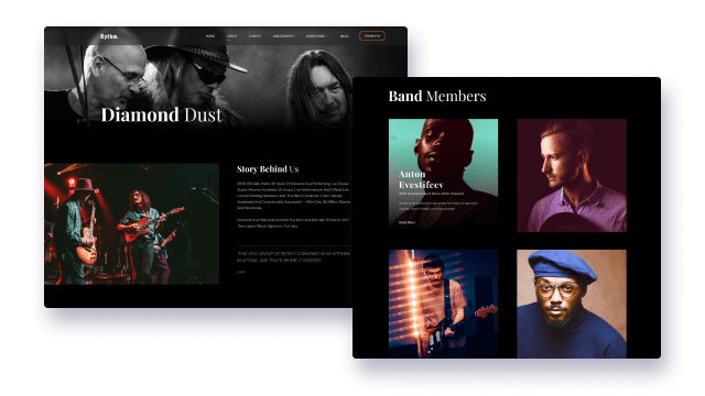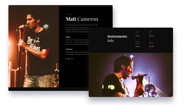 Present your music band to your fans and followers by telling behind stories, showcasing members, tours, and more on a wonderful about page. Tell who you are and impress fans with your rich background stories and musicians.