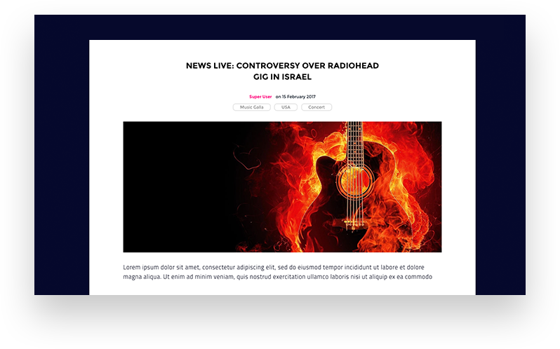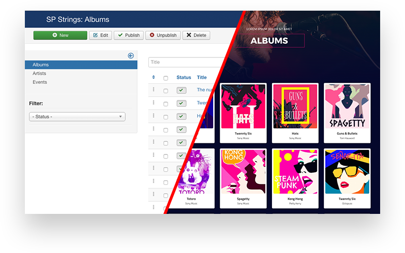There are so much more that the template has to offer such as powerful albums, artists and events listing via the SP Strings component, AcyMailing newsletter integration etc. Enjoy Strings!